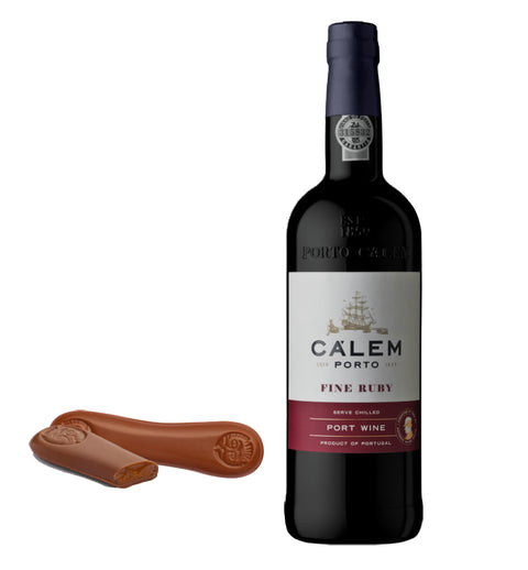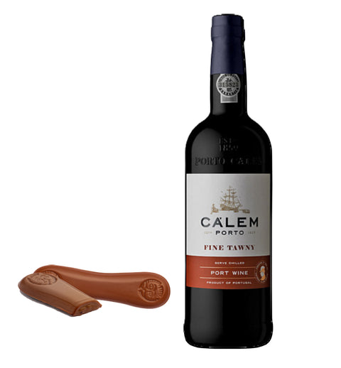 Copo Cálem Reserva Tawny com 2 Línguas de Gato de Chocolate de Leite Recheadas com Caramelo Salgado
