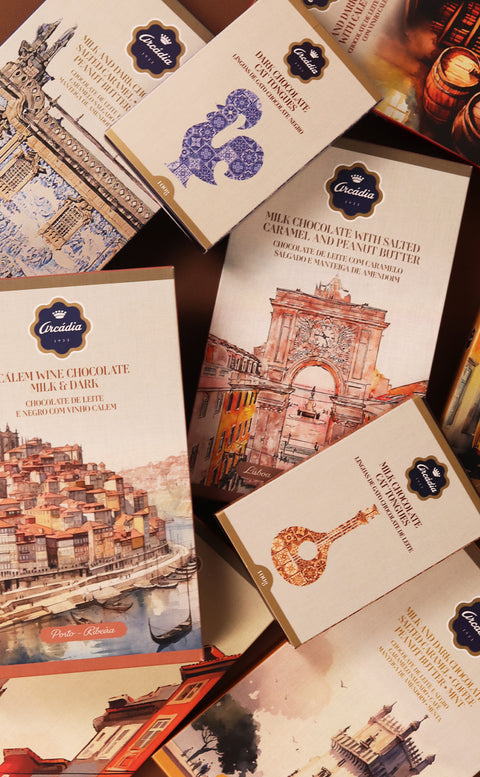 Desde los chocolates artesanales hasta las recetas inspiradas en sabores emblemáticos de nuestro país, cada producto cuenta una historia — la historia de una marca portuguesa que atraviesa generaciones. Una colección exclusiva de Arcádia, hecha con alma, para saborear con el corazón.